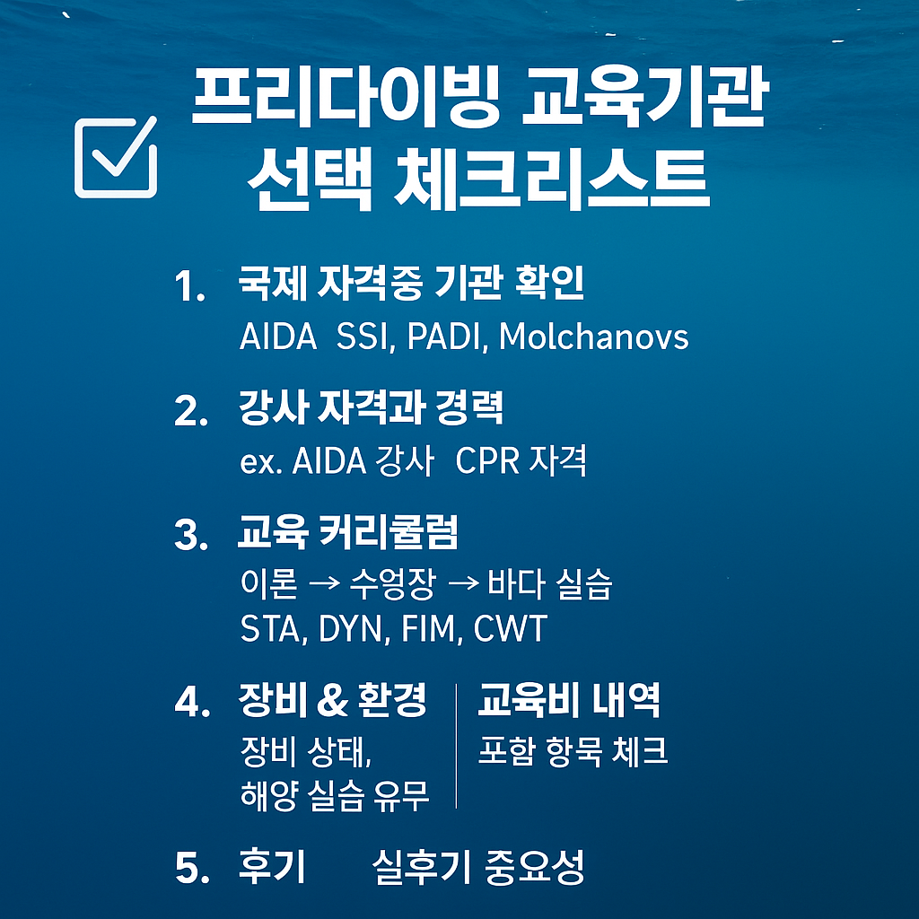 프리다이빙 교육기관 선택 시 체크리스트 본문