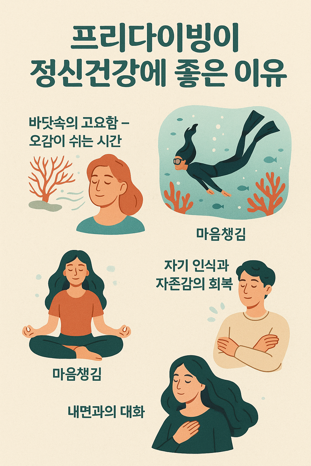 바닷속의 고요함 속에서 자신과 마주하고, 호흡을 조절하고, 감정을 다스리는 경험은